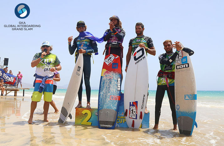 For the second time in as many contests these two great friends found themselves as huge rivals this season. Although they evidently have huge respect for each other, once the green flag goes up, it’s battle on. An amazing show, worthy of the final. Both riders landed mostly similar tricks again (front shove it, double front, front to toeside) but the speed and commitment from Airton gave him the win. He also nailed two impressive kite loop crazy horses with near perfect landings which, as you’ll see in upcoming videos, was rare in such challenging conditions.